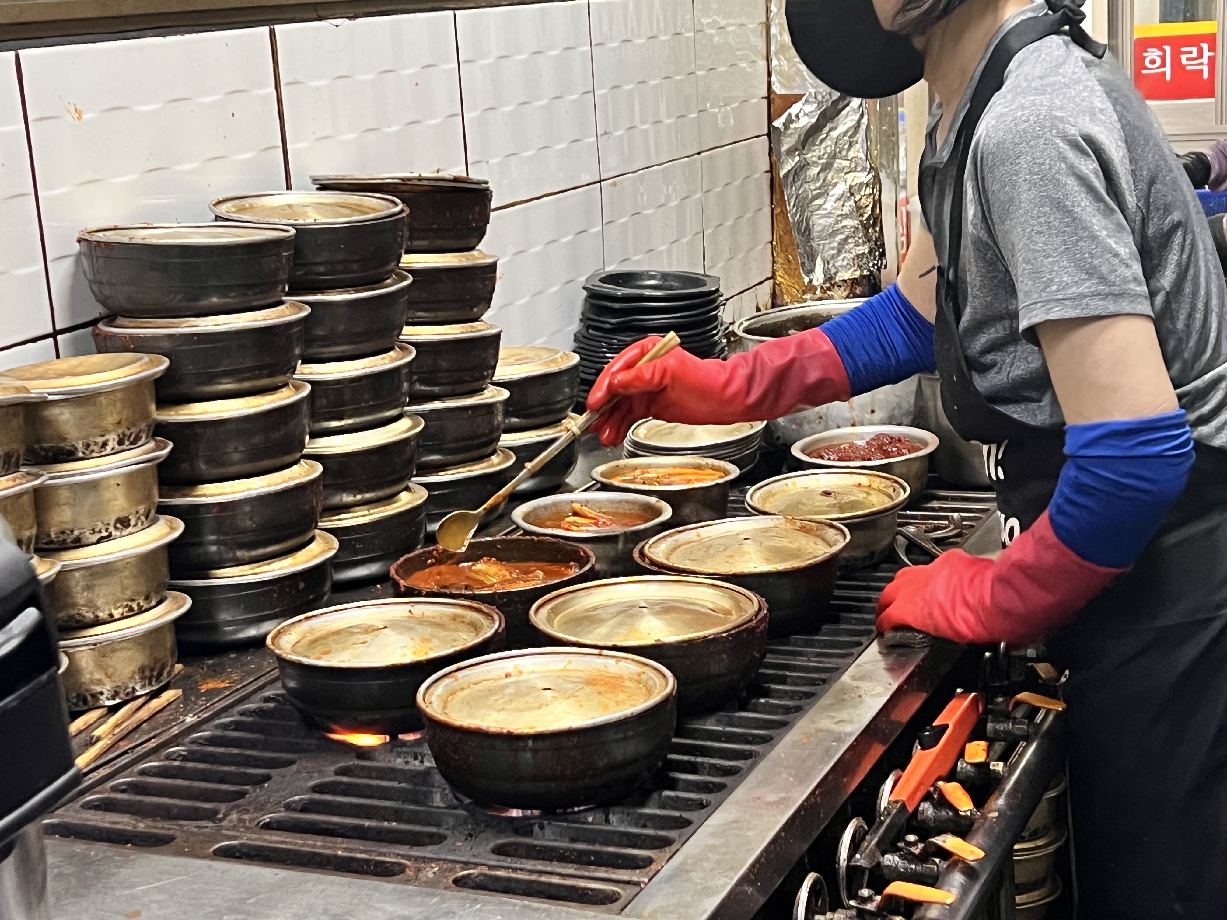 웨이팅 하면서 한 번 주위를 찬찬히 둘러봤는데, 남대문시장 갈치골목은 정말 전통 시장스러운 느낌이 그대로 살아있는 공간이었습니다. 골목 양쪽으로 빽빽이 차 있는 식당들에서 나오는 맛있는 냄새들이 입맛을 자극했습니다.